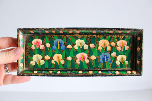 Vintage Handpainted Kashmiri Papier-Mache Tray and Jar