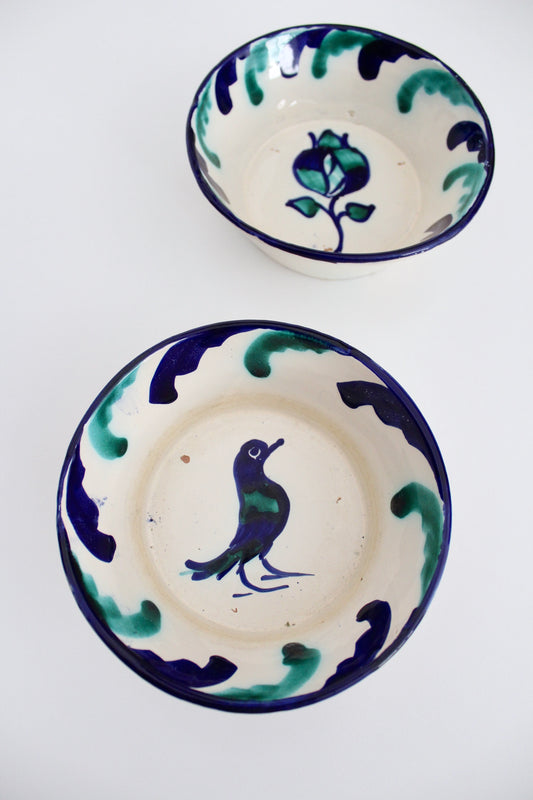Early 20th Century Fajalauza Blue and Green Spanish Terracotta Dish Set