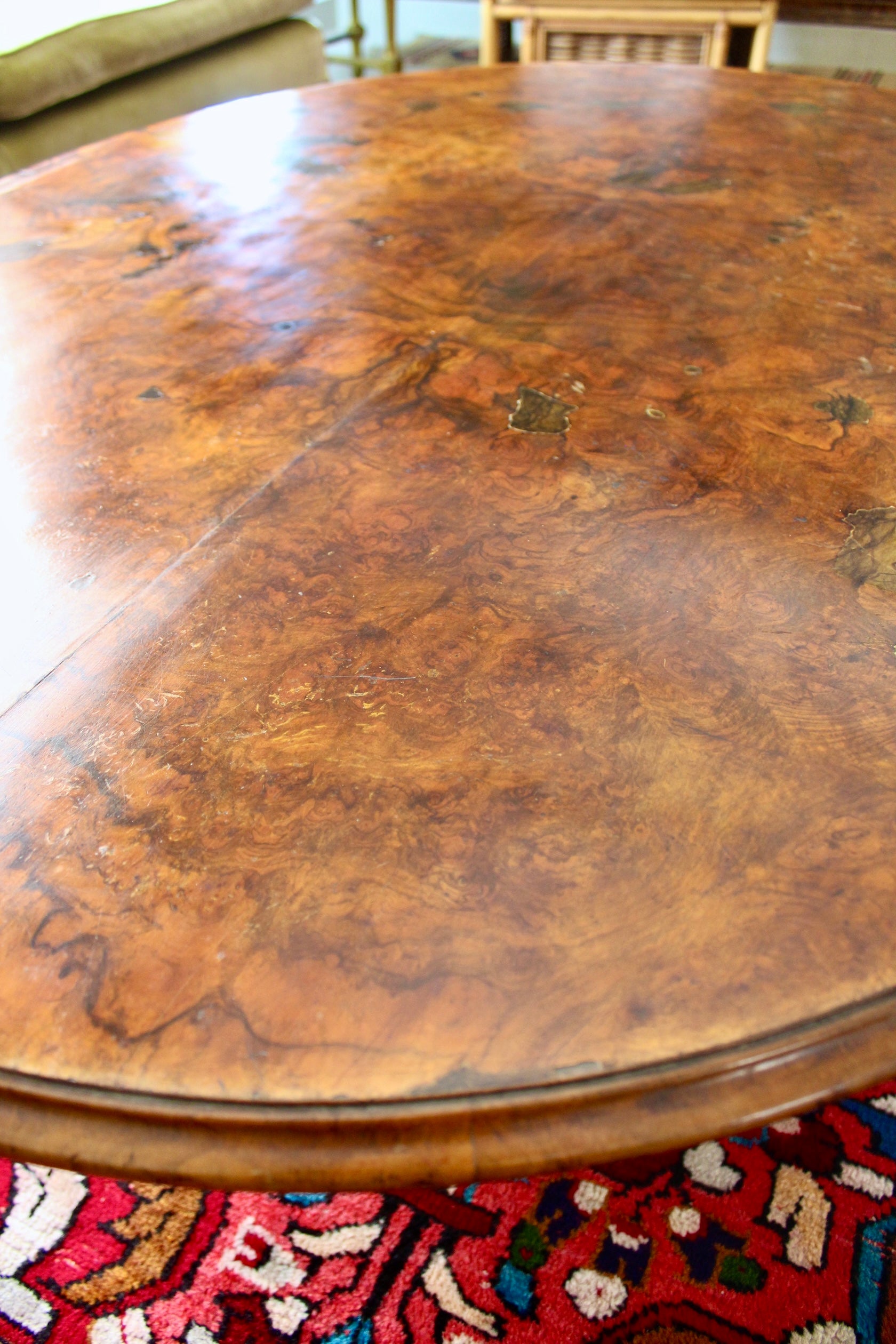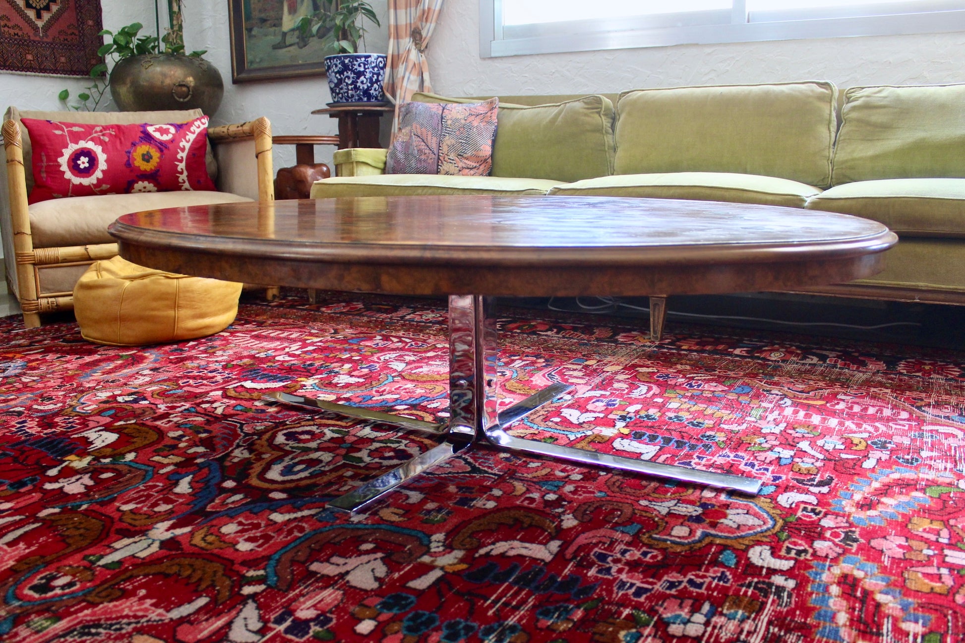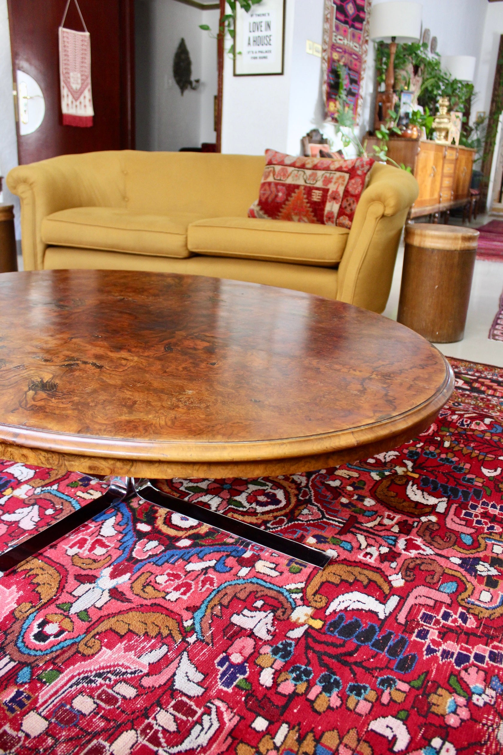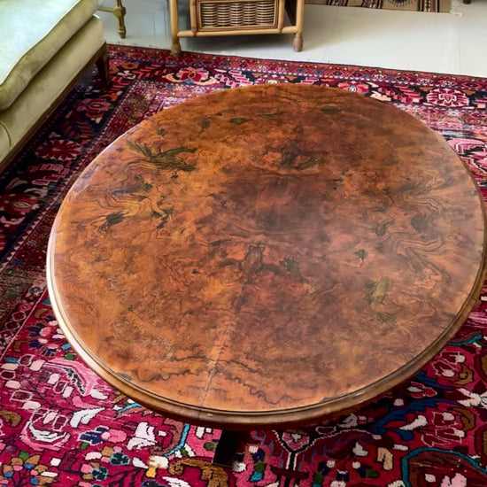 The top is from the 18th century and was handled by "Mousells's Depository" which was a London based furniture shop in Waltham Green, Fulham, a well known area for quality furniture and antiques back in the 19th century. The area is close to what is now Chelsea, Kensington and West London. The table was then transformed in the 1970s from a kitchen table into a coffee table by the addition of the chrome base. You get this history, but also something that is perfect for modern day living.