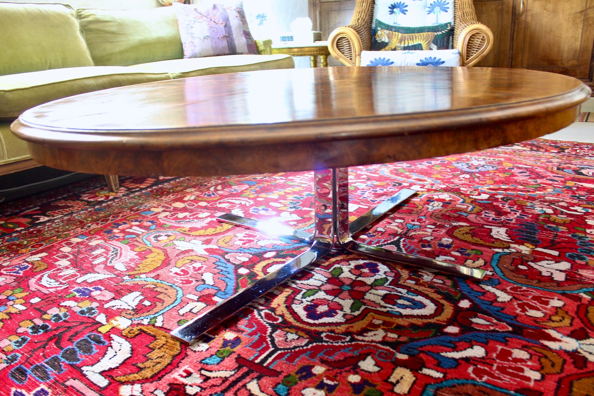 18th Century Table Top with a 1970s Chrome Base