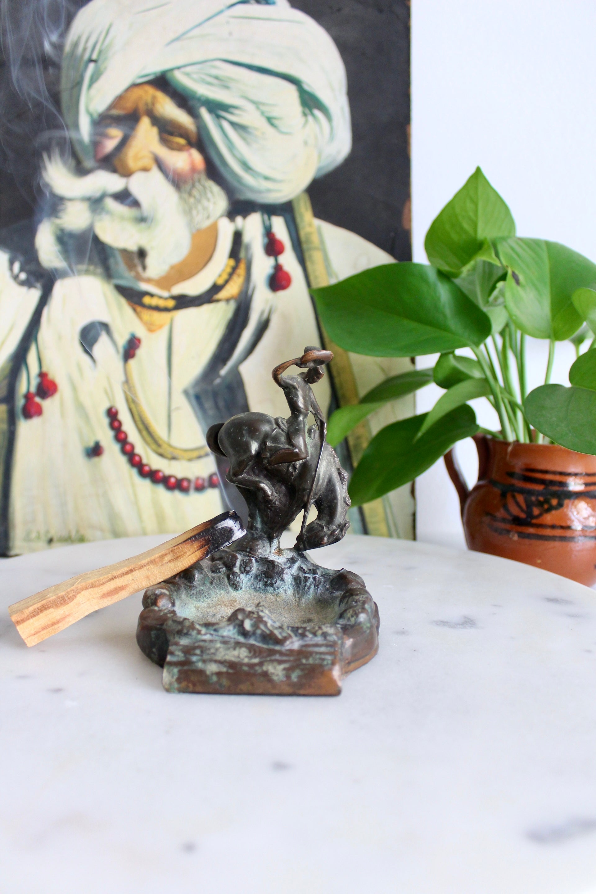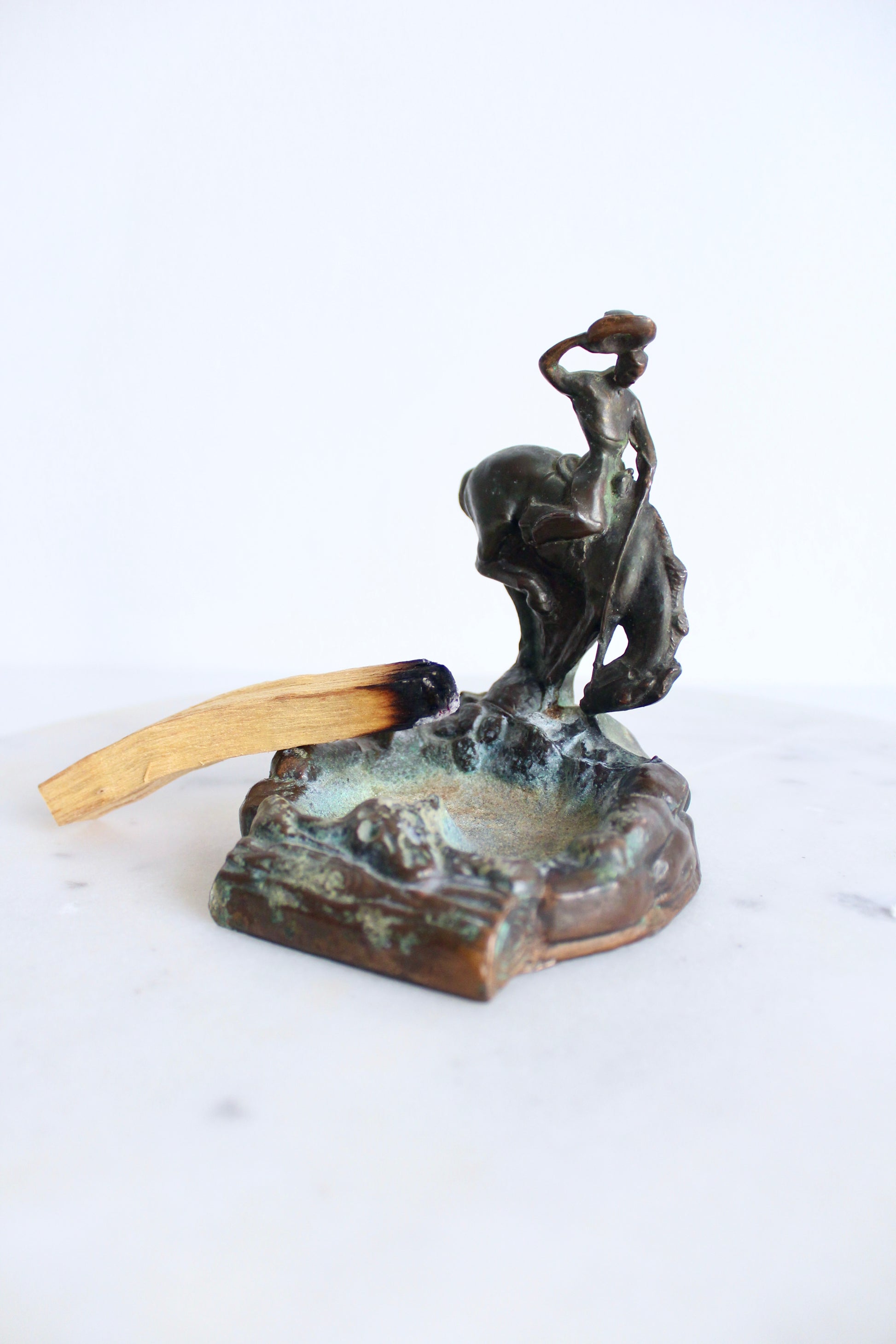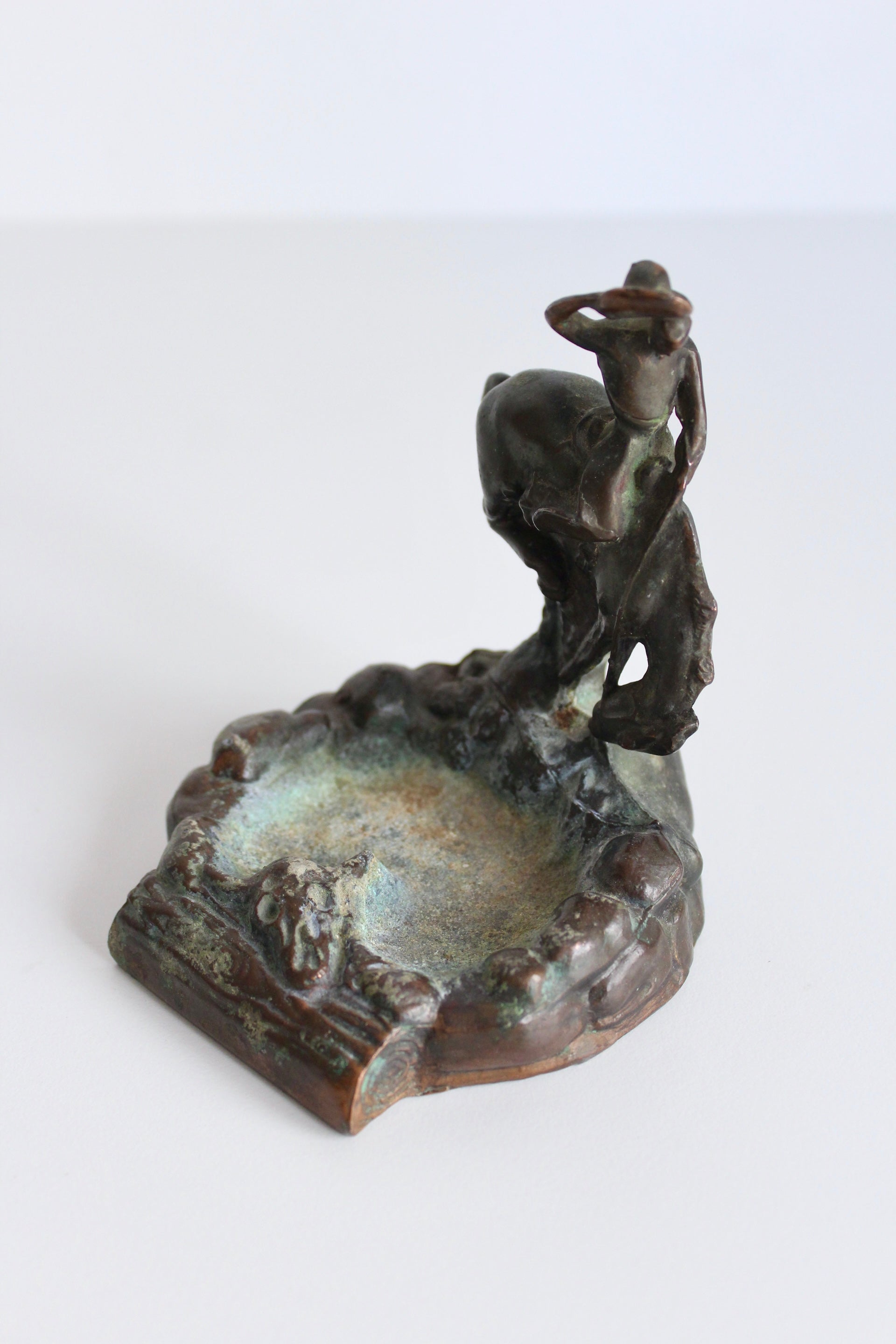 1940s Copper Plated Bronze Cowboy Ashtray/Incense Tray