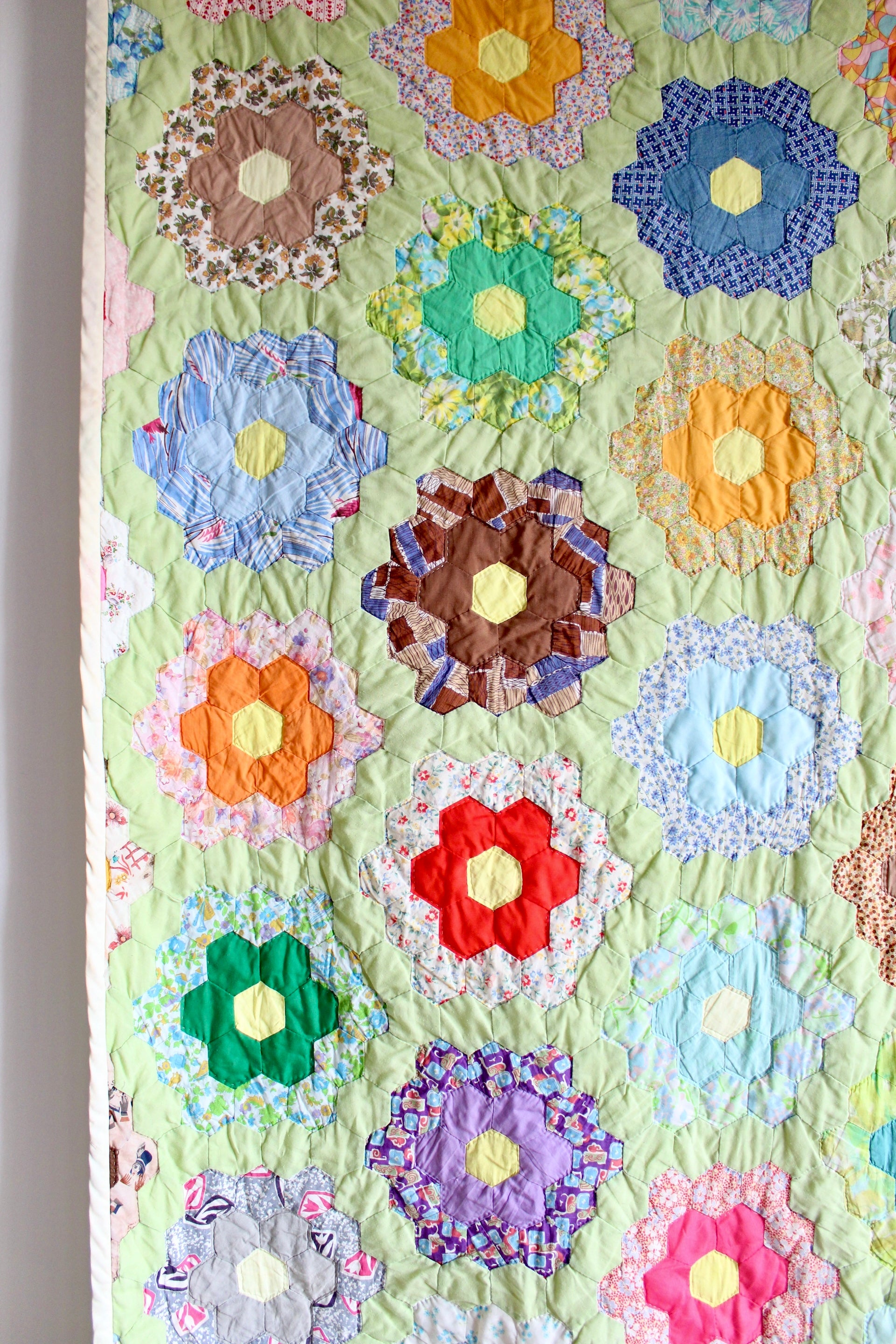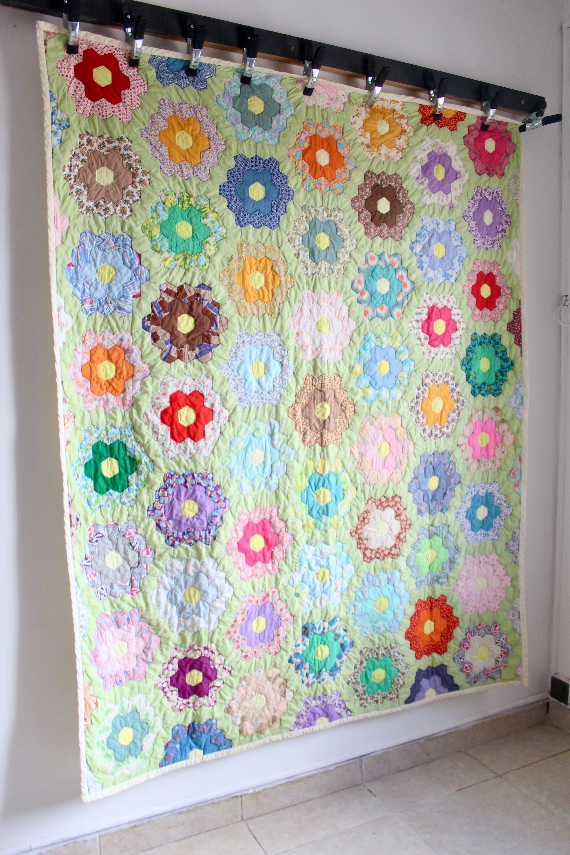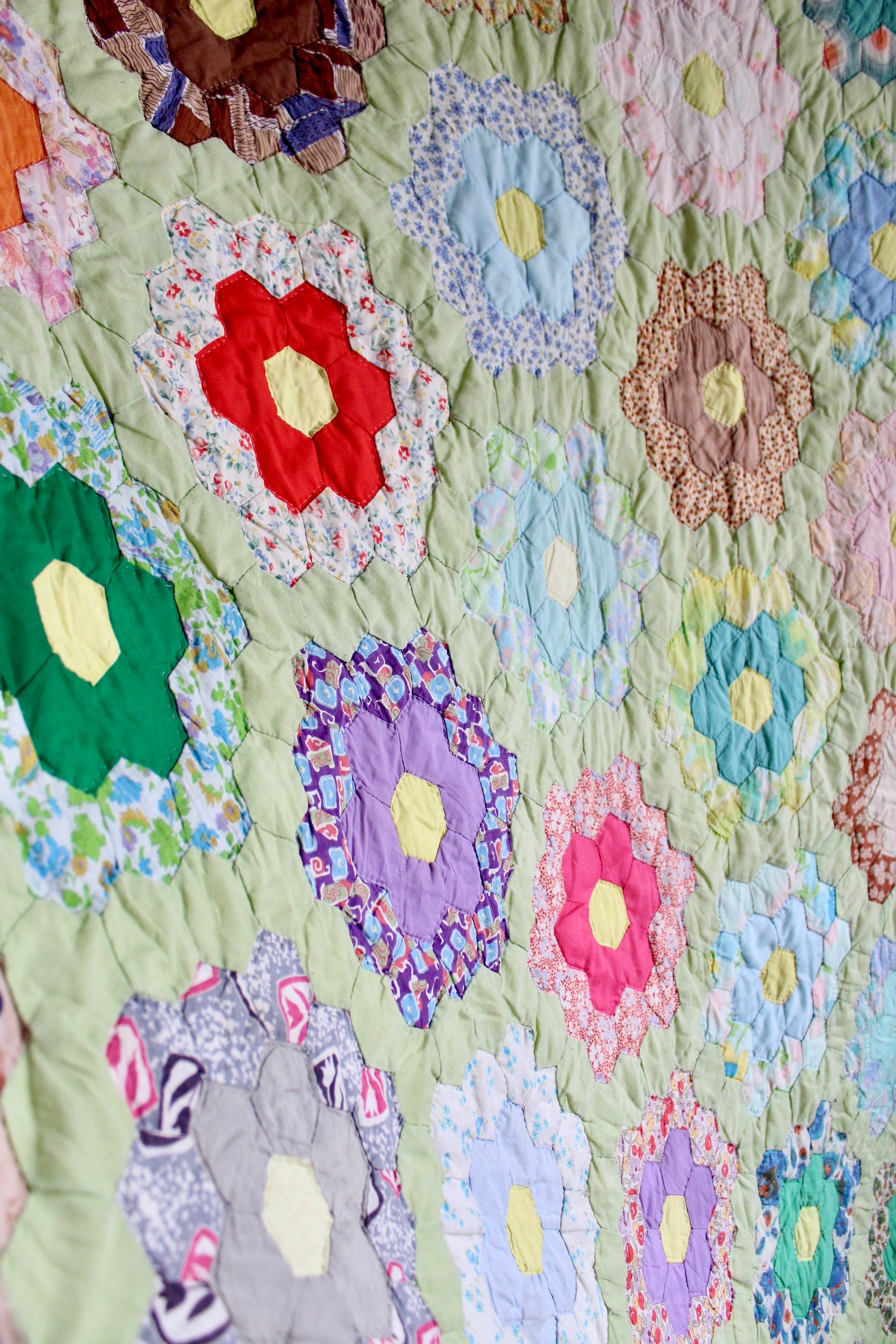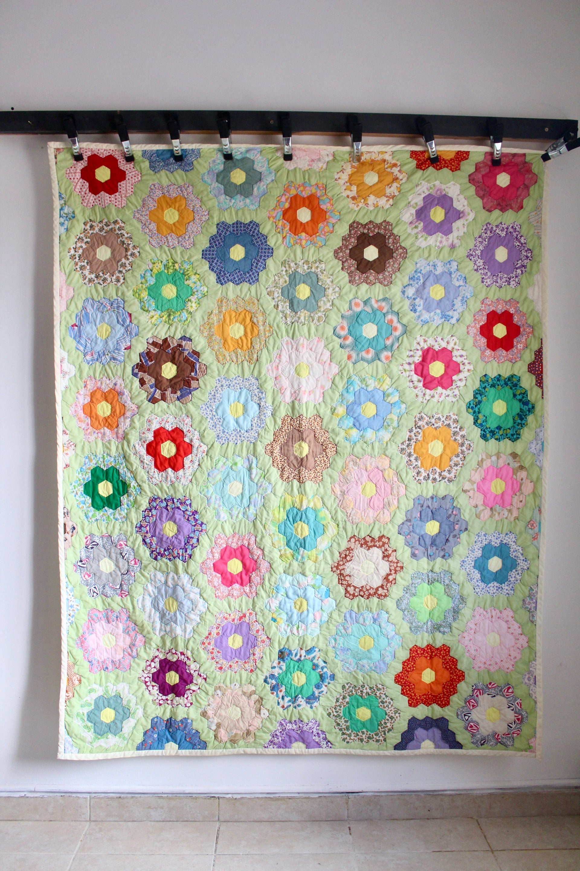 Vintage 1950s patchwork quilt. Please watch the video for more information.