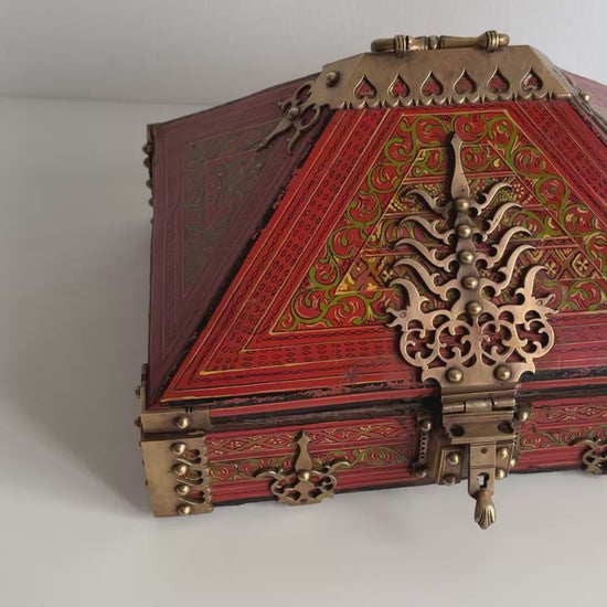 Gorgeous antique box with stunning handmade details and handprinted design. Please watch the video for additional info and condition.