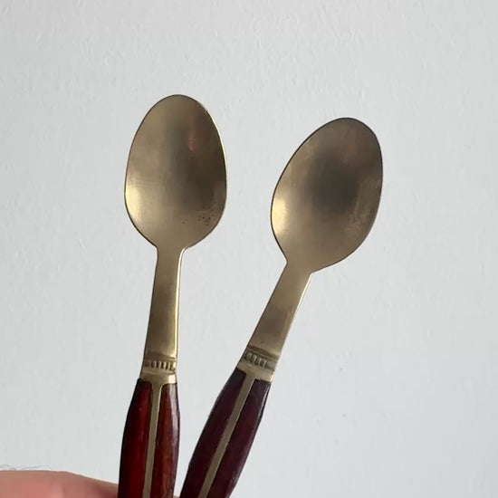 Handmade Antique Teak and Brass Tea Spoons - Thailand