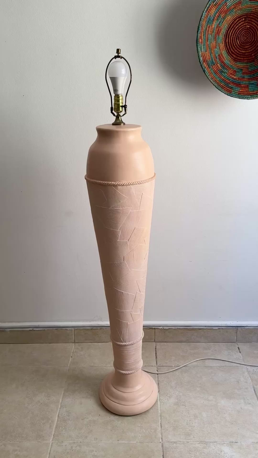 Vintage pottery lamp. Please watch the video for more information. Does not come with a shade.