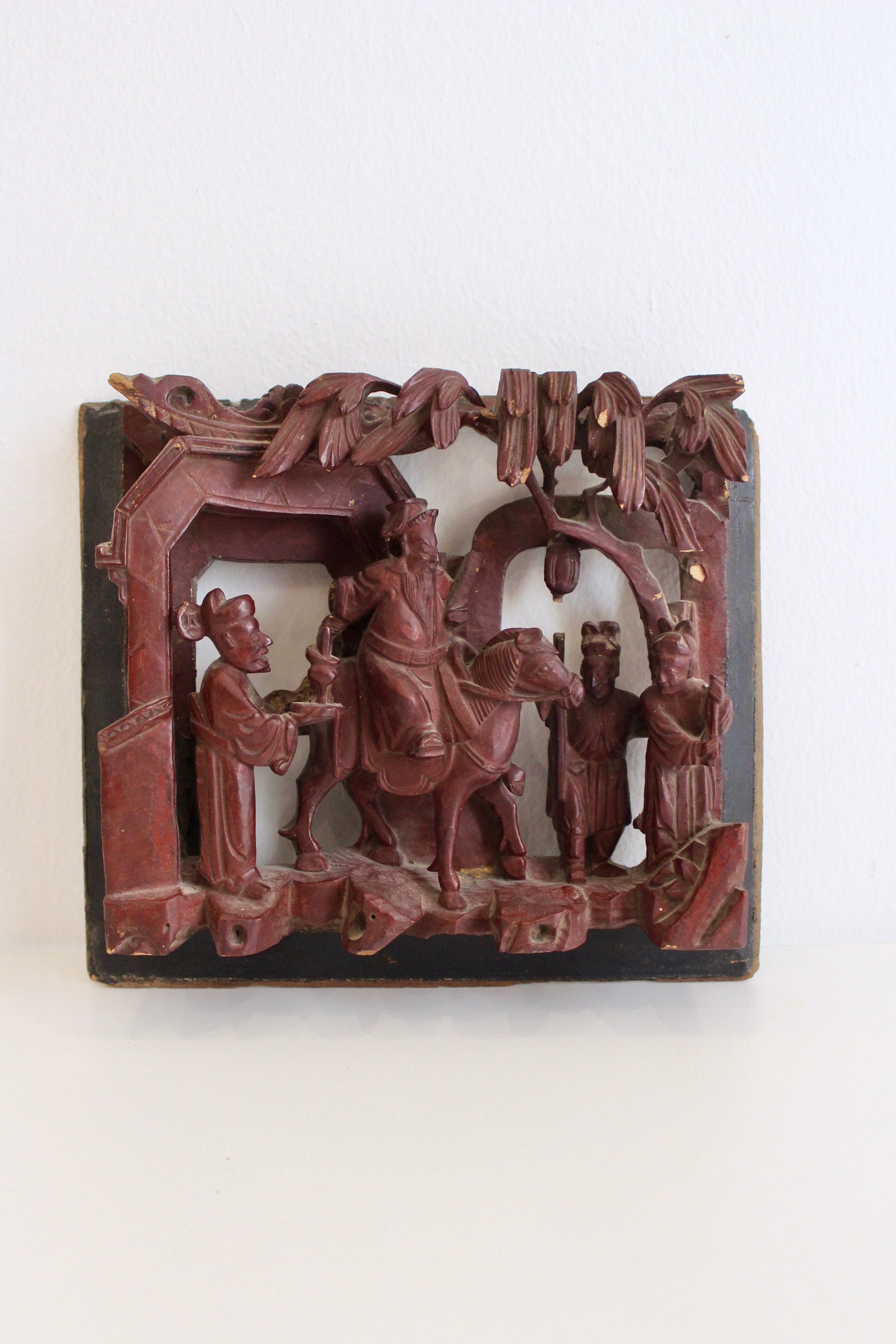 Vintage 1940s Chinese Handcarved and Lacquered Carving