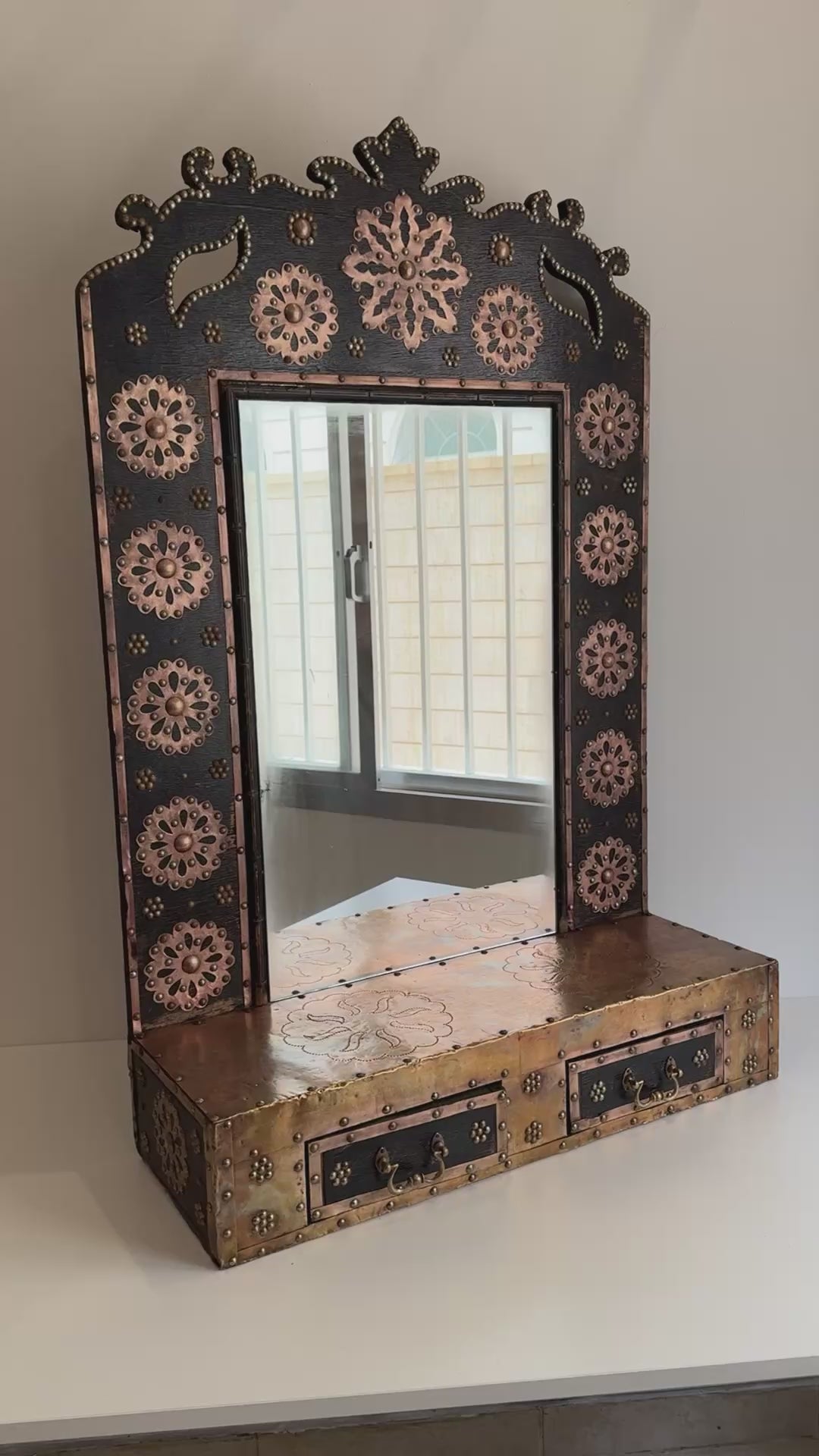 XL Vintage Mirror with shelf and drawers